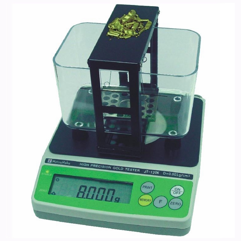 原理:根据阿基米德原理浮力法,准确、快速的读取黄金(k数)、密度和纯度%。